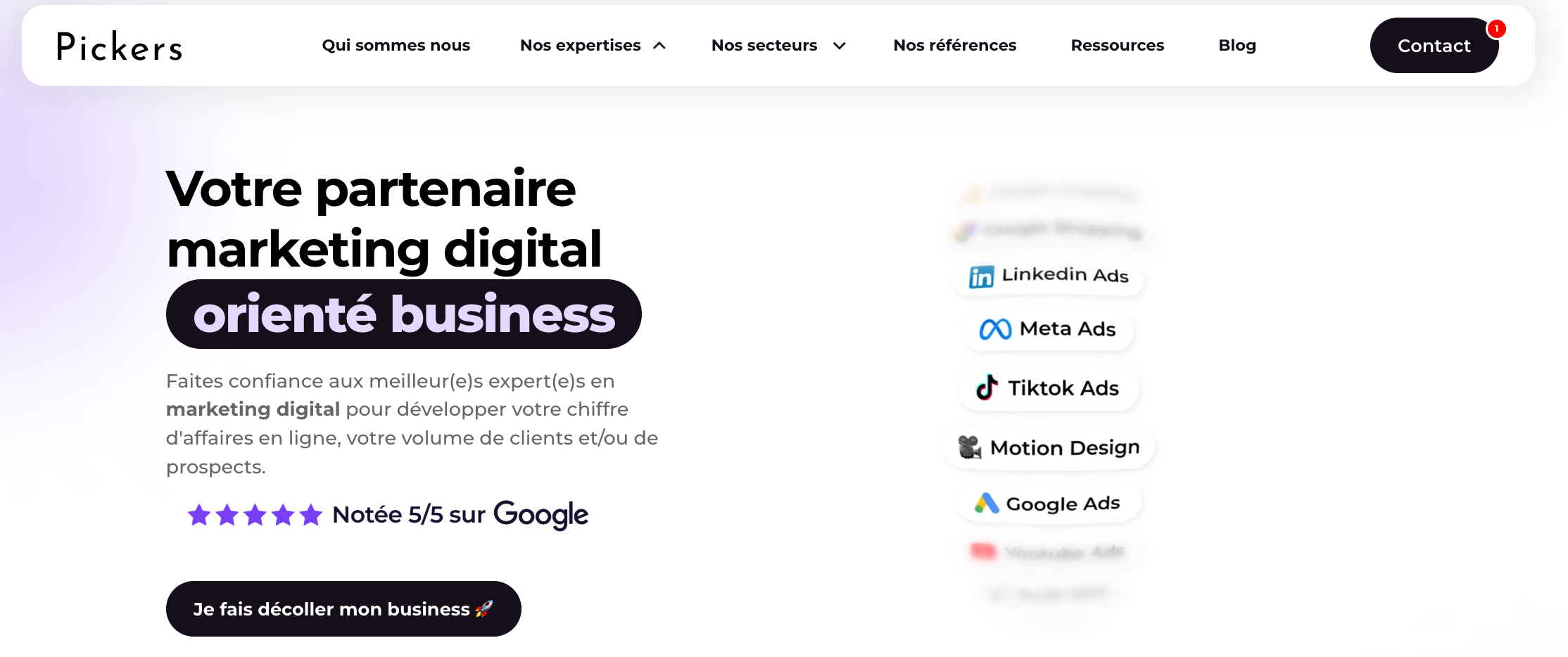 #7 Pickers : La référence pour les entreprises qui veulent combiner SEO, Ads et contenu avec un très fort niveau d’expertise média à Lyon et Paris.