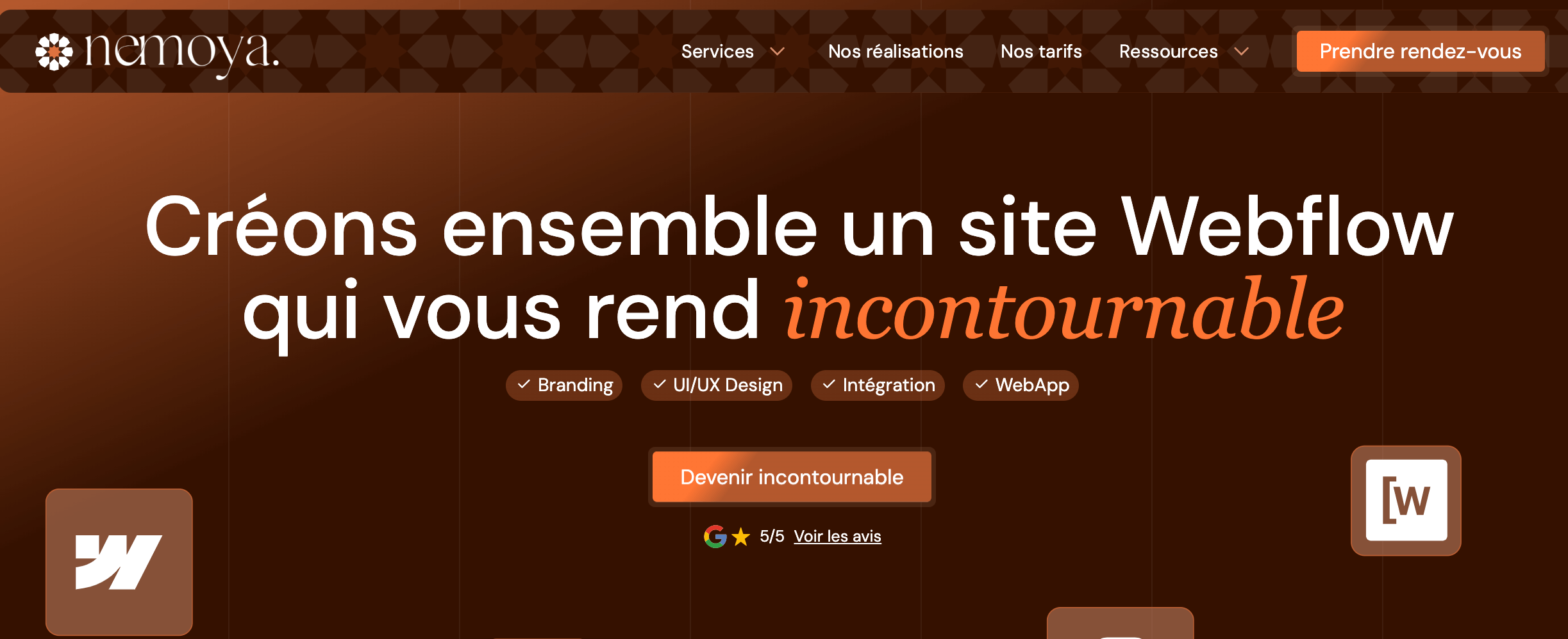 #1 Nemoya : L’agence idéale pour une intégration Webflow précise, performante et orientée optimisation technique et Google Ads.
