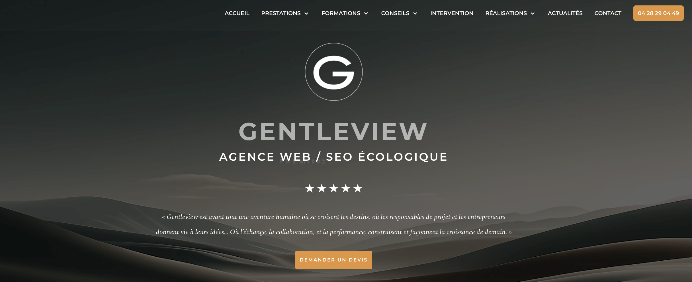 #5 Gentleview : Idéale pour les entreprises sensibles aux enjeux environnementaux, qui souhaitent un site WordPress éco‑conçu et une stratégie SEO/SEA performante, notamment sur le plan local.