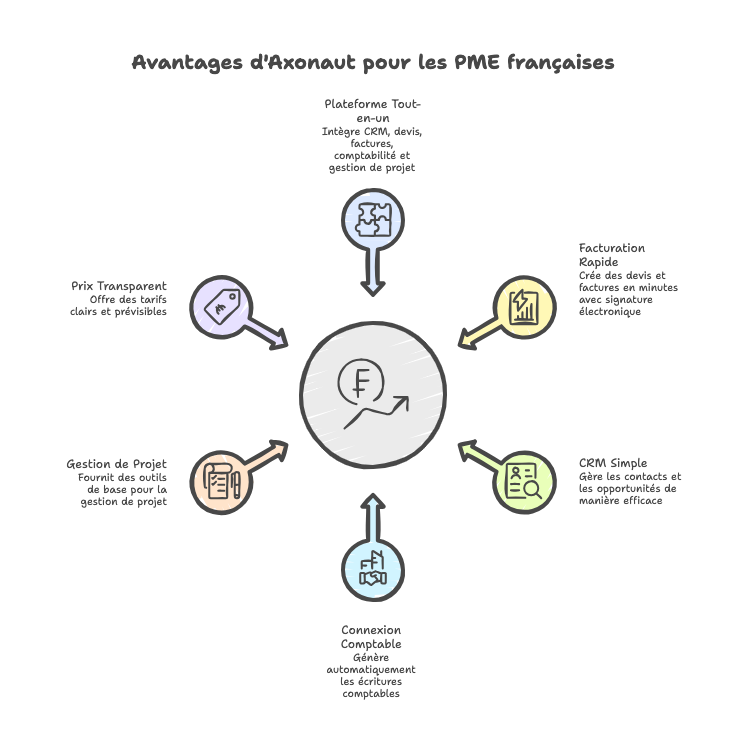 Le vrai calcul à faire : comparez 48,99€/mois tout compris vs le cumul de vos outils actuels (CRM + facturation + compta + gestion de projet). Si vous en avez 3-4, Axonaut est probablement plus rentable.