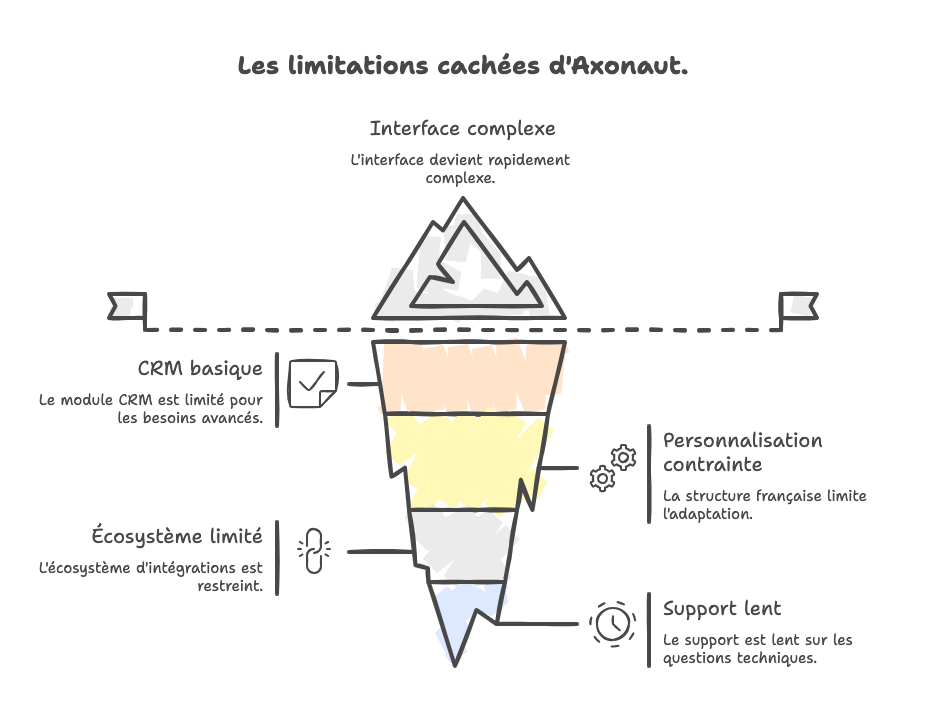 Axonaut a été conçu pour le marché français, ce qui est un atout énorme pour la conformité fiscale et comptable. Mais cette spécialisation crée aussi des rigidités quand on veut adapter l'outil à des processus métier spécifiques ou à une organisation internationale.