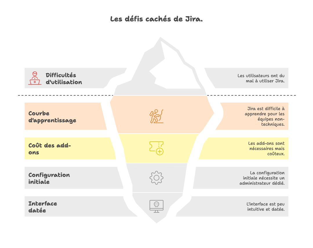 Pour une équipe habituée à des outils modernes (Notion, Airtable, Slack), Jira peut sembler archaïque. J'ai vu plusieurs fois des équipes résister à l'adoption simplement parce que l'interface leur paraissait "moche" et compliquée.