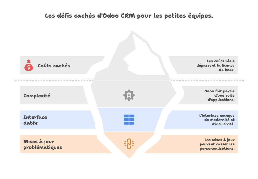 Le piège, c'est qu'Odoo vous permet techniquement de tout faire, mais rarement sans passer par la case "consultant". Pour une structure de 15-20 personnes sans compétence technique interne, le TCO (coût total de possession) peut vite dépasser celui d'un CRM classique qui coûte plus cher à l'achat mais ne nécessite pas d'expertise.