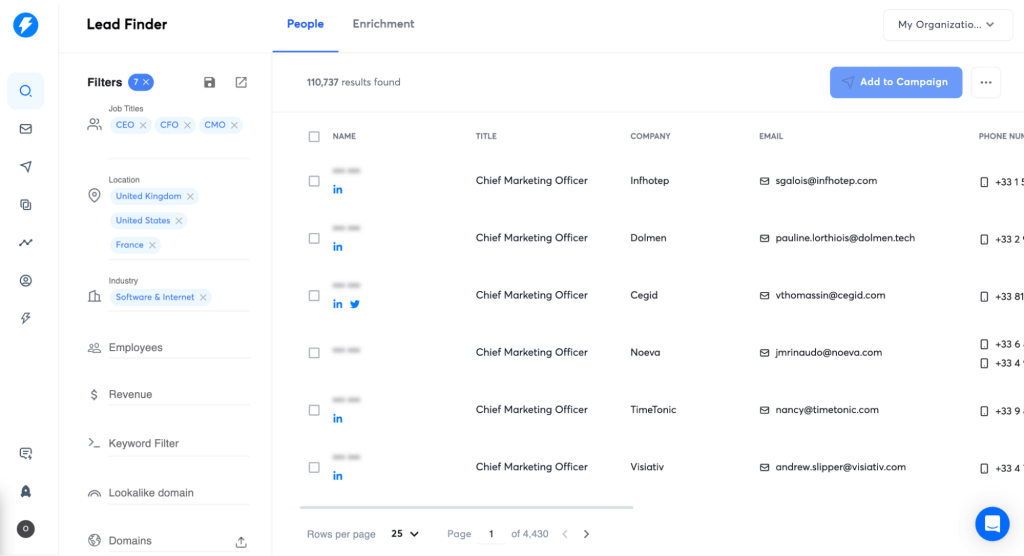 Un autre élément à anticiper : le coût de l'enrichissement. lemlist propose des crédits gratuits, mais vous payez ensuite au succès (5 crédits par email, 20 par numéro de téléphone). Instantly ne semble pas proposer cette fonctionnalité en natif, ce qui peut nécessiter un outil tiers.