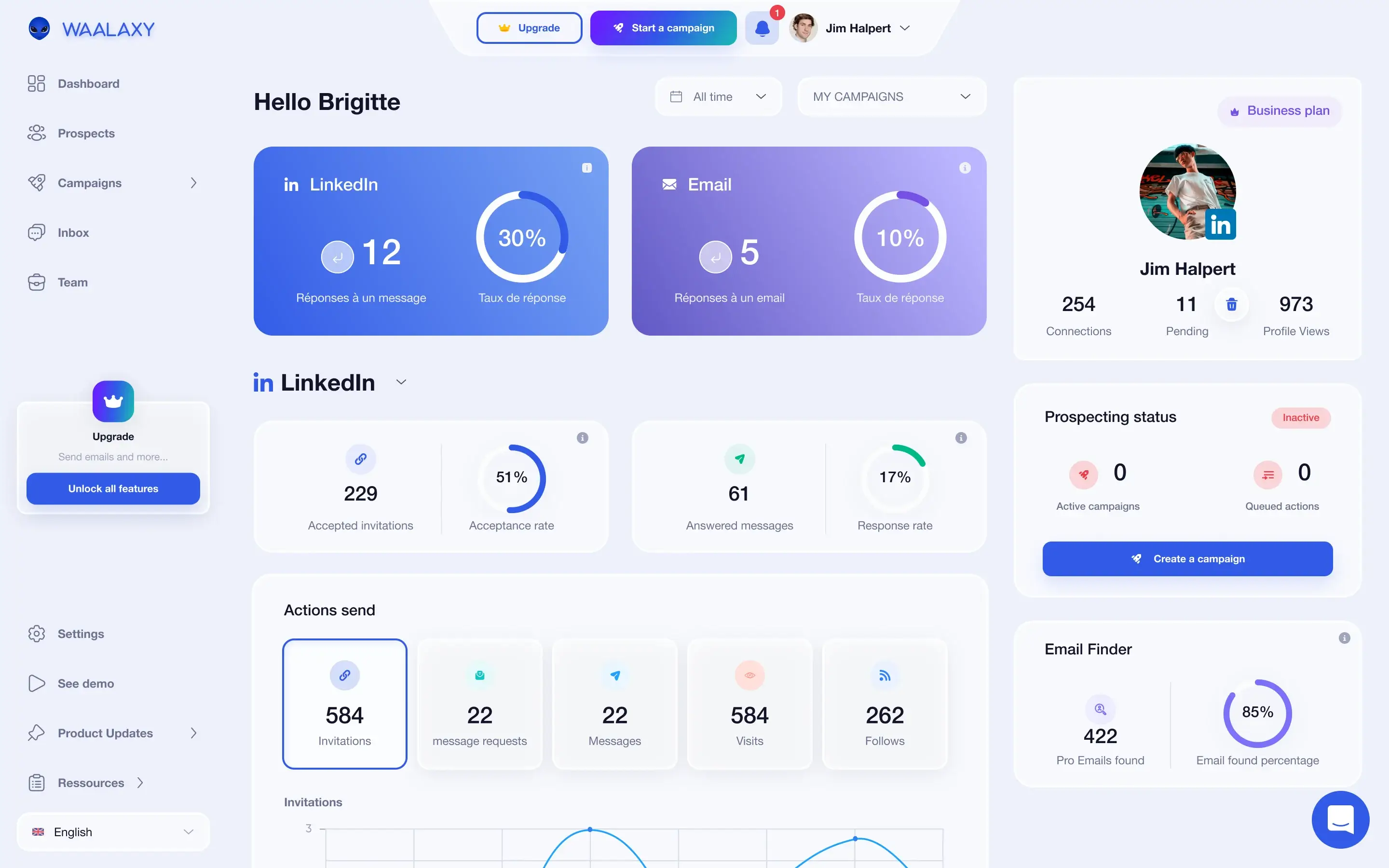 Si LinkedIn est votre terrain de jeu principal et que vous voulez démarrer vite : Waalaxy.