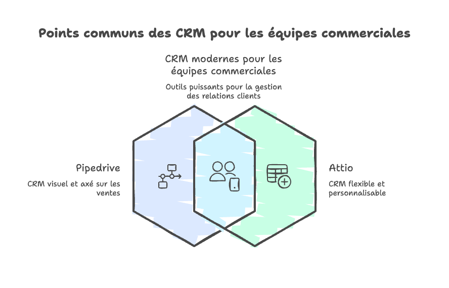 Avant de détailler les différences, il est utile de rappeler ce que Pipedrive et Attio partagent. Ce sont ces points communs qui en font deux solutions sérieuses pour gérer vos relations clients et votre pipeline commercial.