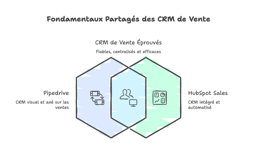 Avant de mettre en avant ce qui les oppose, il faut reconnaître ce que Pipedrive et HubSpot Sales partagent. C'est justement grâce à ces fondamentaux qu'ils se positionnent comme des références pour structurer l'activité commerciale d'une PME.