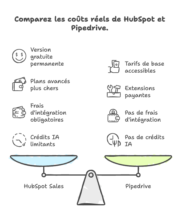 En résumé : HubSpot est plus accessible en entrée de gamme, notamment grâce à sa version gratuite. Mais Pipedrive conserve un avantage tarifaire net sur les plans intermédiaires et avancés. Le vrai arbitrage ne se fait pas uniquement sur le prix affiché, mais sur le coût réel à moyen terme, en fonction de vos besoins réels et de la taille de votre équipe.