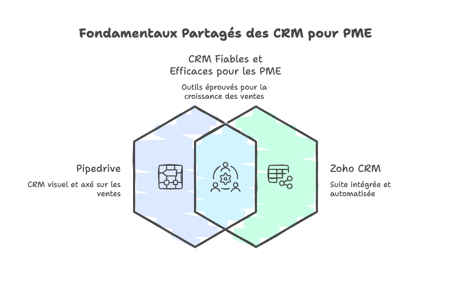 Avant de détailler ce qui les différencie, il est utile de rappeler ce que ces deux outils partagent. Ce sont ces fondamentaux communs qui en font des références solides pour les équipes commerciales de PME.