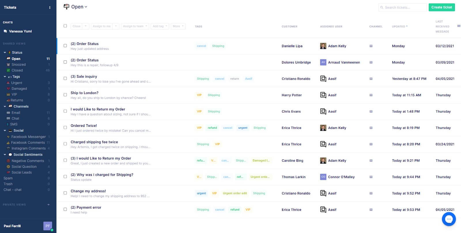🤝 Une centralisation de toutes les conversations : les deux outils permettent de sortir du chaos des emails éparpillés, des messages Facebook perdus et des demandes Instagram oubliées. Email, chat, réseaux sociaux et SMS se retrouvent au même endroit. Les équipes savent où chercher les demandes clients.