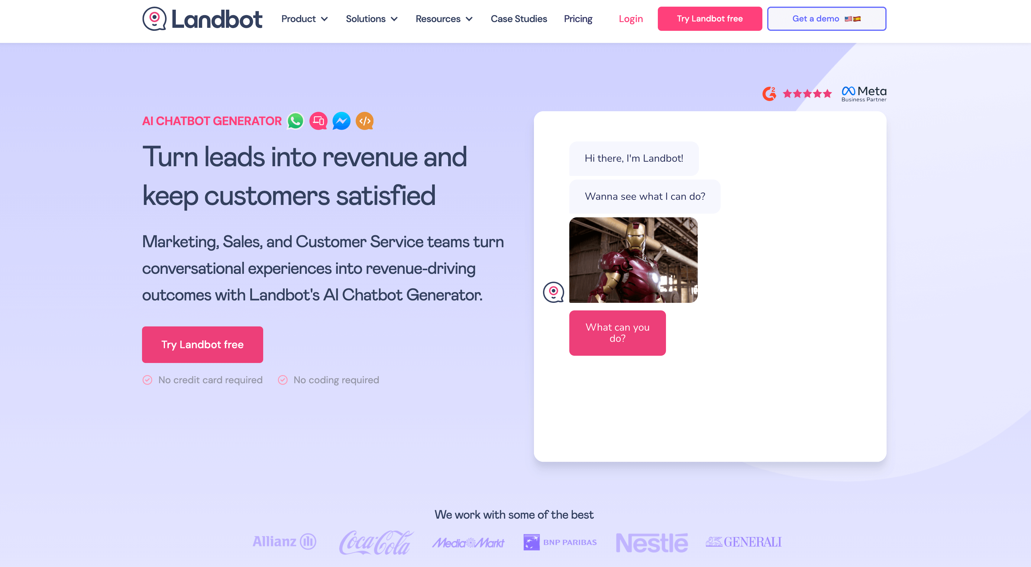 Landbot est un constructeur de chatbots no-code qui permet de créer des expériences conversationnelles visuelles, sans écrire une ligne de code.