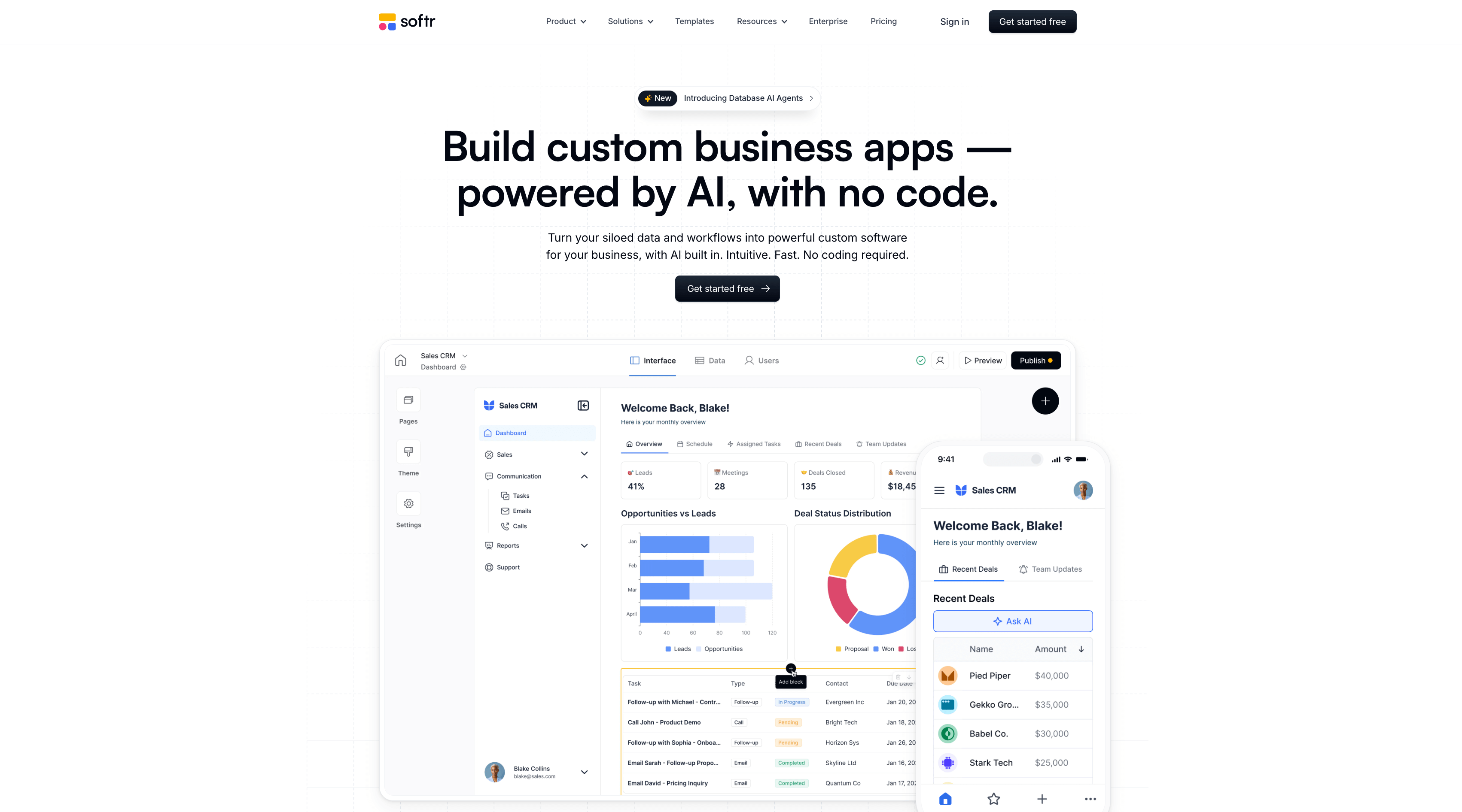✅ Softr : outil no-code ultra simple, idéal pour les PME qui veulent créer rapidement des portails internes (CRM, RH, projets) à partir d’Airtable ou Google Sheets.