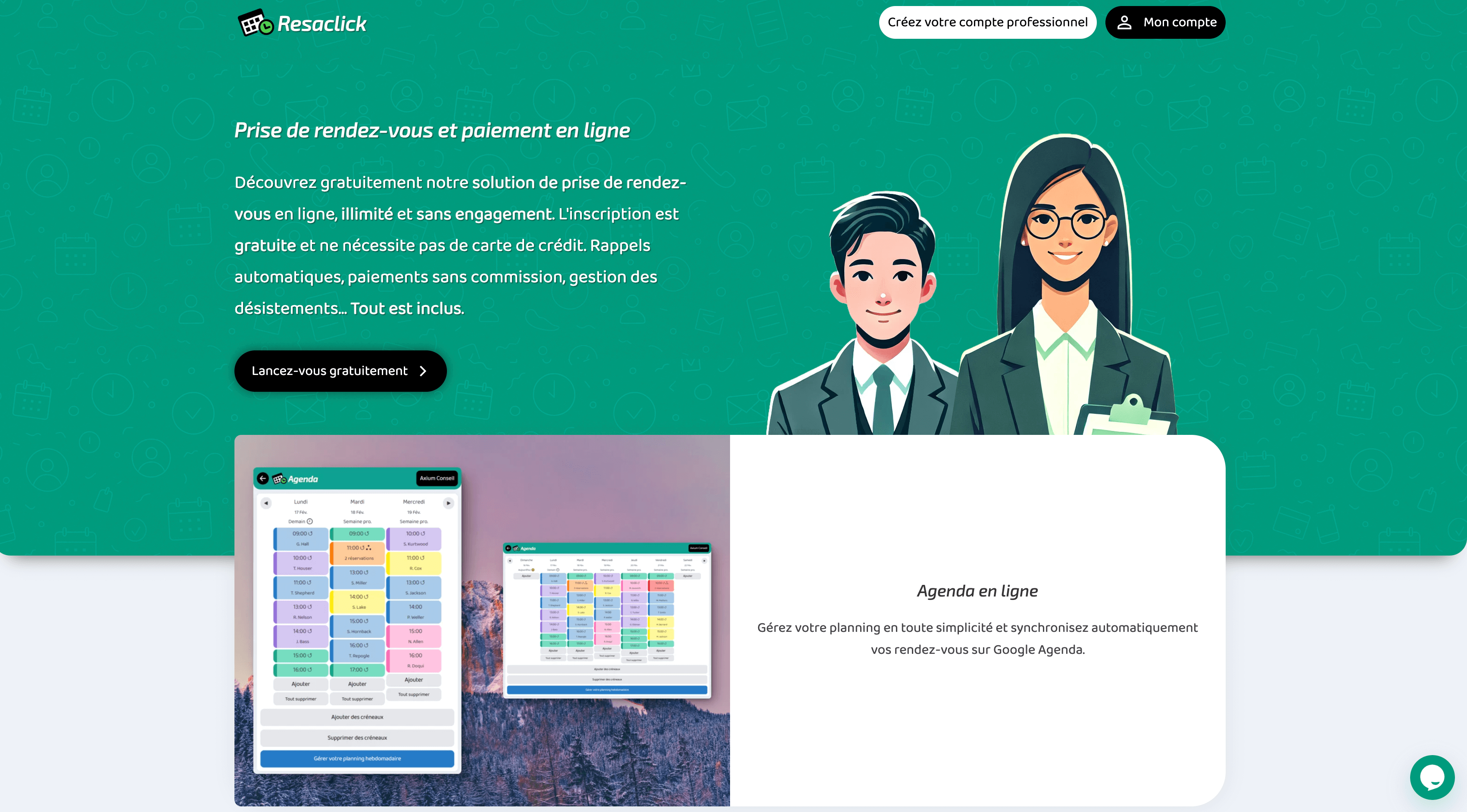 ✅ Resaclick : la solution française simple et gratuite, avec un vrai support local, idéale pour indépendants et petites structures.
