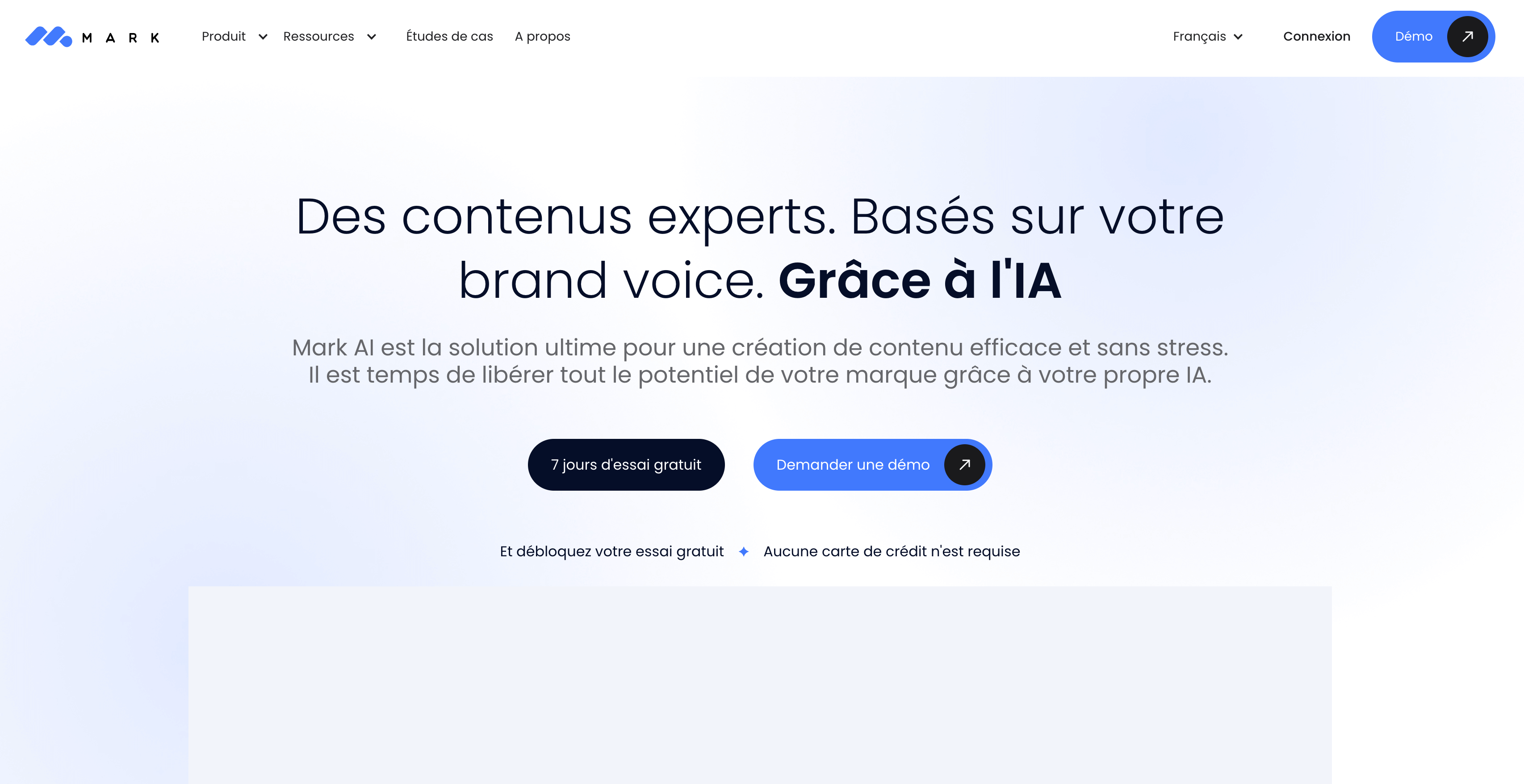 ❌ Nécessite une phase initiale de configuration de la “brand voice” avec l’équipe Mark AI.