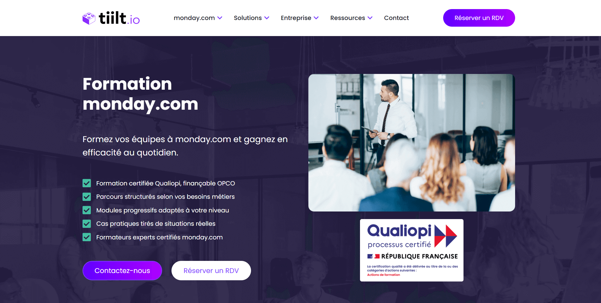 Certifiée Platinum Partner monday.com, Tiilt.io propose une formation sur-mesure pour optimiser l’utilisation de monday.com selon vos besoins.